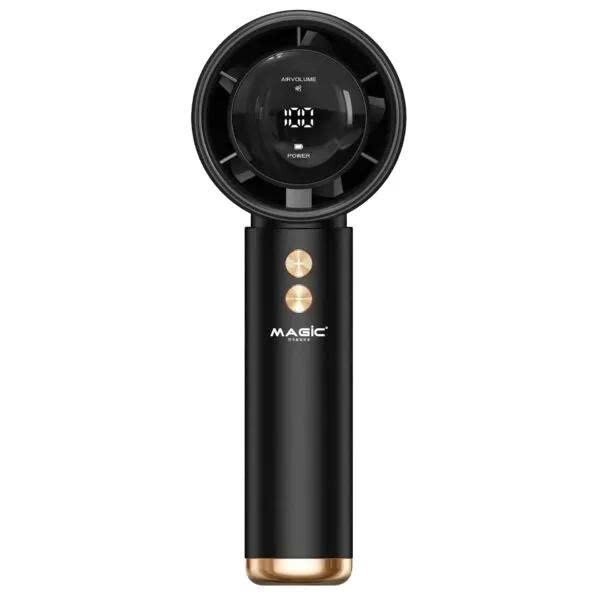 - Trang bị động cơ chổi than tốc độ cao, quạt sạc cầm tay mini Magic A-009 vận hành mạnh mẽ, đạt đến 10.000 vòng/phút, thổi gió nhanh và mạnh hơn. Đặc biệt, máy vẫn giữ độ êm ái đáng kể không rung lắc tay cầm.