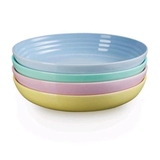 Set 4 đĩa tròn sâu lòng Le Creuset Pasta 22cm được làm bằng sứ tráng men, nung ở nhiệt độ cao 1400°C, có mật độ lỗ xốp thấp, độ hút nước thấp và bề mặt mịn màng nên rất dễ lau chùi. Nó có khả năng chịu nhiệt và lạnh tốt, có thể cho vào lò nướng, lò vi sóng và máy rửa chén.