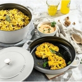 Set nồi chảo gang Staub Cocotte 24cm 4L/1.9L màu trắng xám là lựa chọn hoàn hảo cho những người yêu nấu ăn chuyên nghiệp và gia đình hiện đại. Với thiết kế sang trọng, màu trắng xám tinh tế và dung tích đa dạng, bộ sản phẩm giúp bạn chế biến nhiều món ăn khác nhau từ hầm, kho, xào đến nướng, giữ nguyên hương vị và dưỡng chất của thực phẩm.