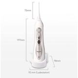 Công nghệ máy bơm nước Panasonic cải tiến tạo ra dòng nước mạnh với áp suất xấp xỉ. 5.9 thanh. Điều này làm sạch hiệu quả những khu vực mà bàn chải đánh răng không chạm tới được. Ngoài những khoảng trống răng còn có cầu, mão và mắc cài cố định.