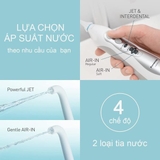 Công nghệ tạo ra tia nước mạnh với áp suất khoảng 590kPa giúp làm sạch hiệu quả những vị trí mà việc chải răng không thể chạm tới như kẽ răng và xung quanh cầu răng, niềng răng và thân răng.