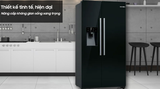 Thuộc dòng tủ lạnh Side by Side, Bosch KAD93ABEP sở hữu thiết kế hai cánh mở đối xứng với gam màu đen sang trọng và mặt kính không viền tinh tế, mang lại vẻ ngoài cao cấp cho không gian bếp. Không chỉ đẹp mắt, thiết kế này còn giúp người dùng dễ dàng thao tác khi sử dụng.